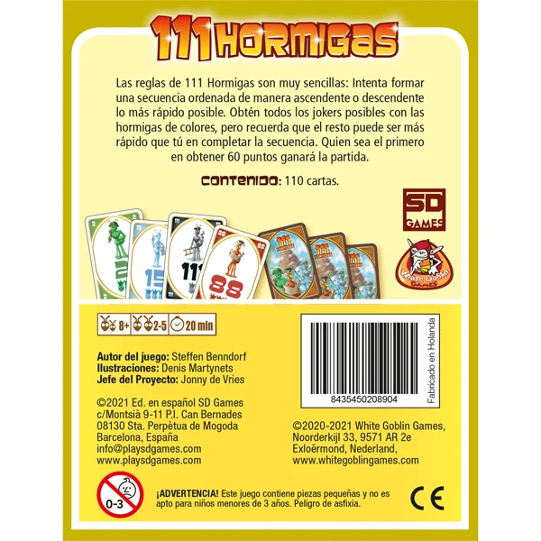 Obtén todos los jokers posibles con las hormigas de colores, pero recuerda que el resto puede ser más rápido que tú en completar la secuencia. Quien sea el primero en obtener 60 puntos ganará la partida.