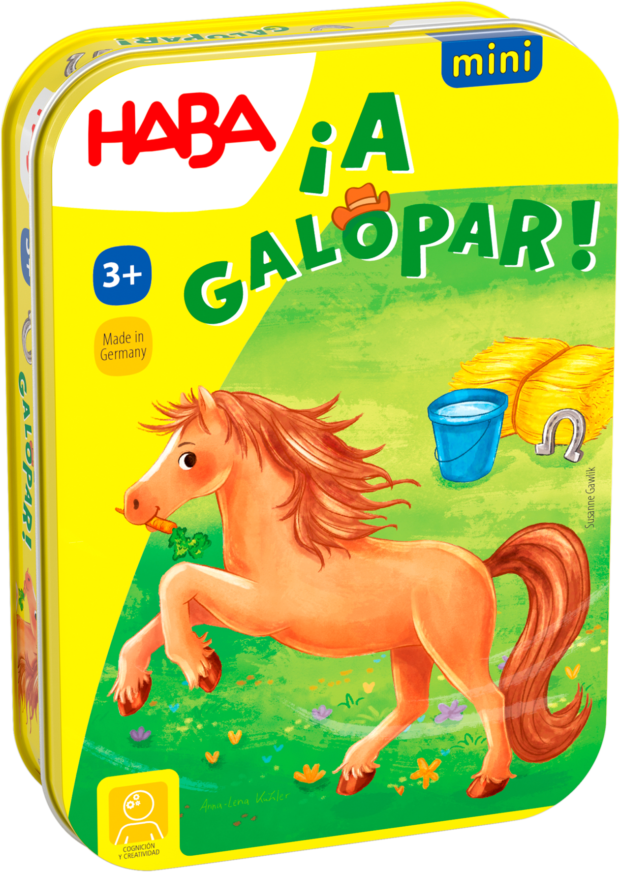 Versió mini en caja de lata del juego de recorrido y recolección. Se trata de ser los primeros/as en llevar a su caballo desde la dehesa a su box correspondiente, recogiendo en el camino todos los objetos indicados en la tarjeta. Para ello, por turnos, se lanzan los 2 dados y se decide si avanzar o si coger un objeto.