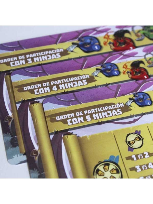 Los turnos de juego se suceden siguiendo el orden de participación de la carta correspondiente, dependiendo del número de jugadores. Los retos plantean situaciones que en ocasiones rozan el absurdo… ¡Aunque para los ninjas, eso es el pan de cada día!