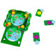 1 jungla, 1 tablero, 4 piezas de juego, 4 piedras amarillas, 27 tarjetas grandes, 28 cartas pequeñas de pista, 16 fichas de pista, 1 instrucciones del juego.