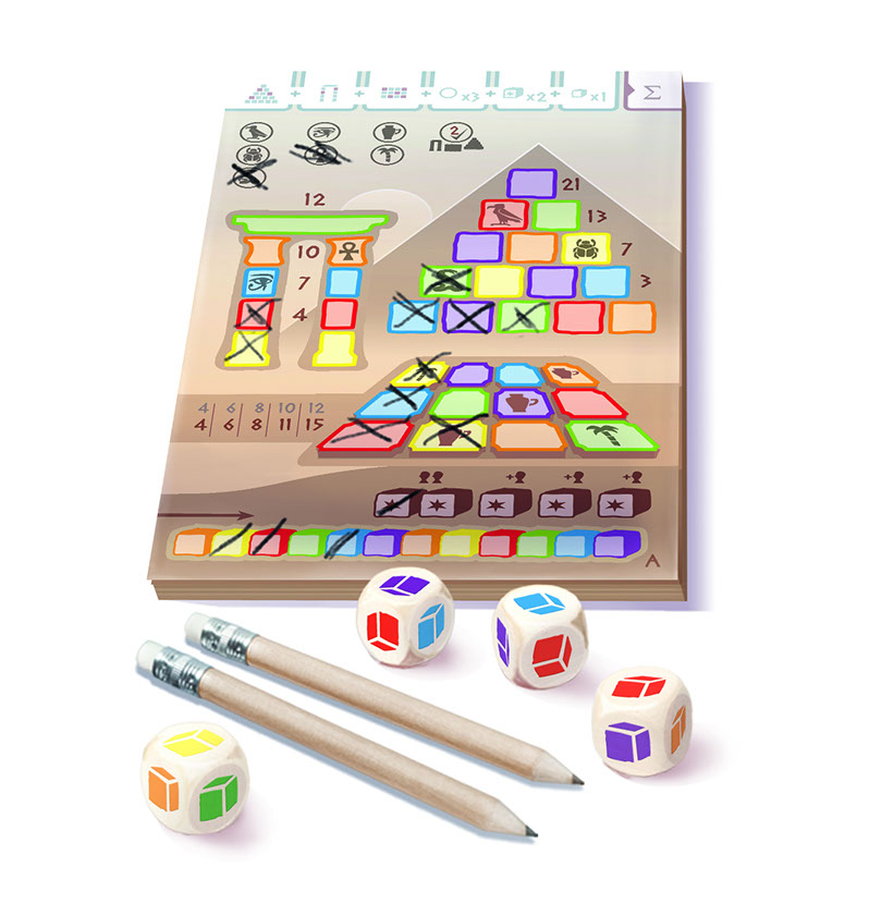 El faraón Keops ha convocado a los mejores capataces de su reino para que le construyan una majestuosa pirámide. Deben adornar la pirámide con un arco del triunfo y un relieve en el suelo.
