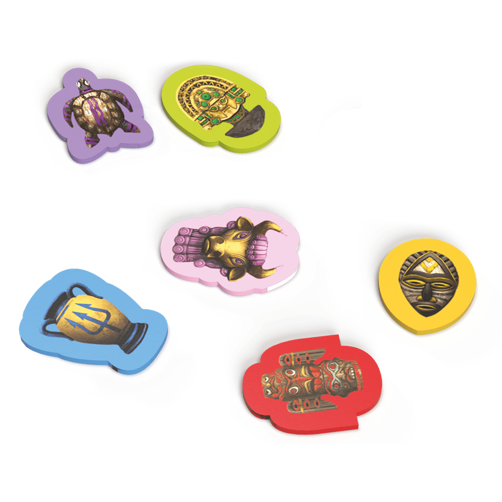 1 Reglamento, 1 Tablero de Puntuación, 6 Tableros de Sitio Arqueológico de Doble Cara, 159 Cartas, 54 Vehículos (9 de cada uno en 6 formas y colores), 6 Fichas de Jugador, 1 Marco de Botánico, 1 Tablero de lingüista, 36 Fichas de Reliquia (6 de cada una), 6 Tableros de Museo, 6 Fichas de Profesor.