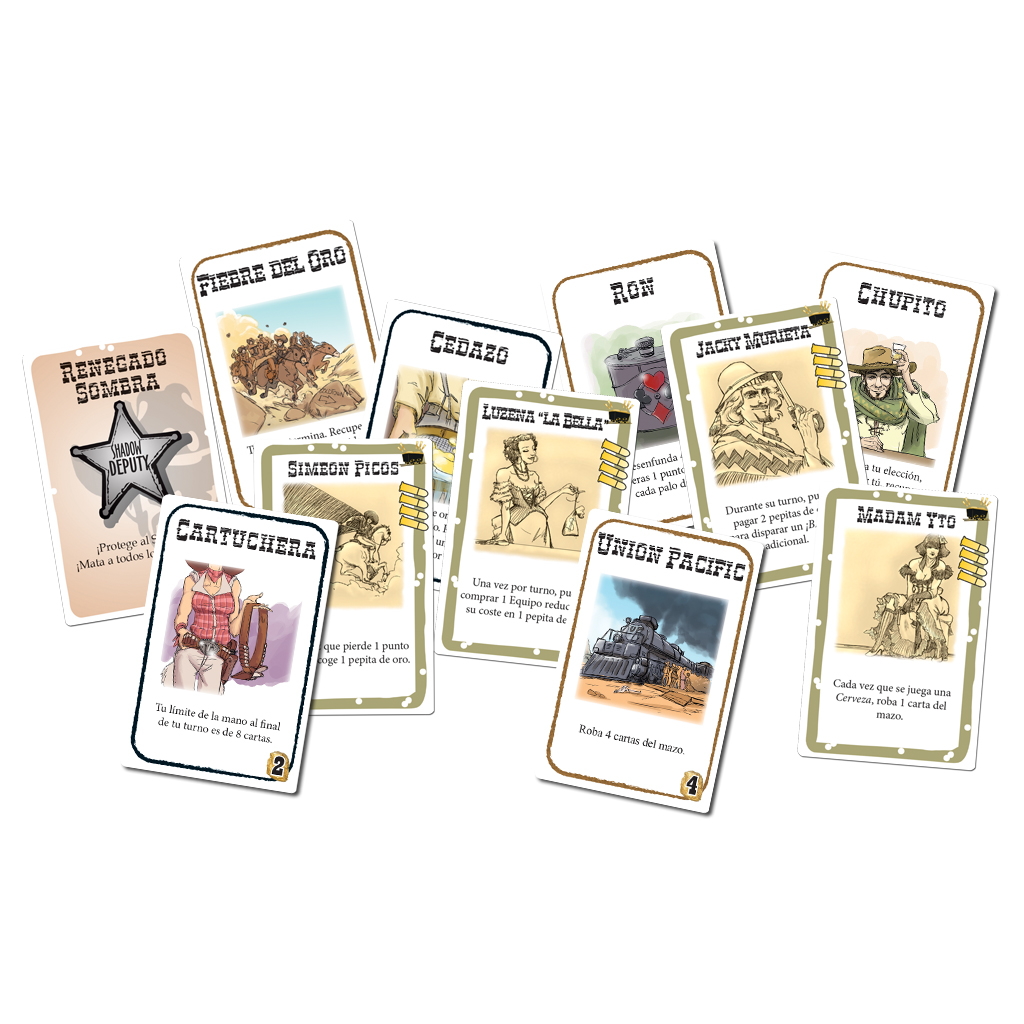 Bang!: Fiebre del oro es una expansión que hace tus partidas de Bang! aún más divertidas y emocionantes. La caja incluye nuevos personajes, una nueva carta de rol, nuevas cartas de equipo y 30 pepitas de oro que te permiten adquirir nuevas cartas de equipo y desplumar a tus oponentes.