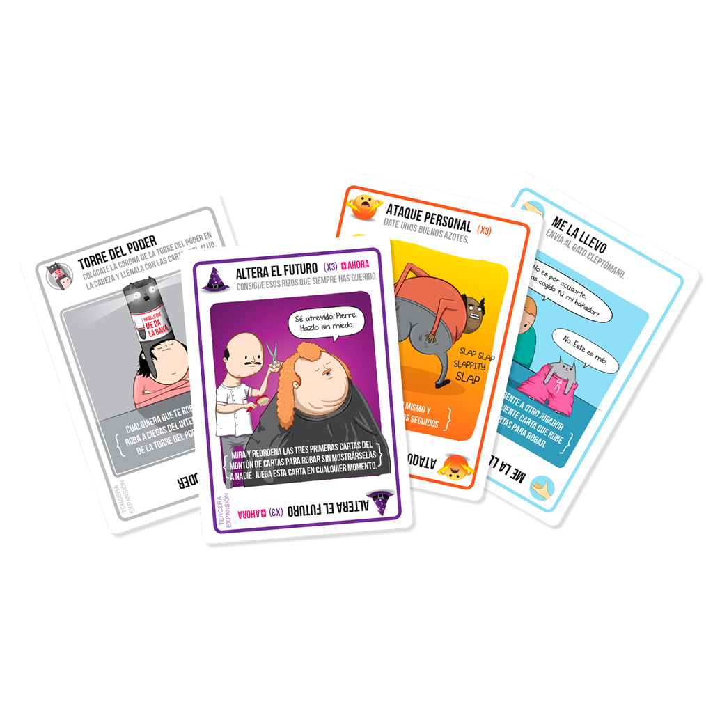 20 cartas revolucionarias con nuevas acciones y características poderosas; Ilustraciones delirantes del galardonado dibujante The Oatmeal, una corona de gato que te protege de que el resto de los jugadores te robe.