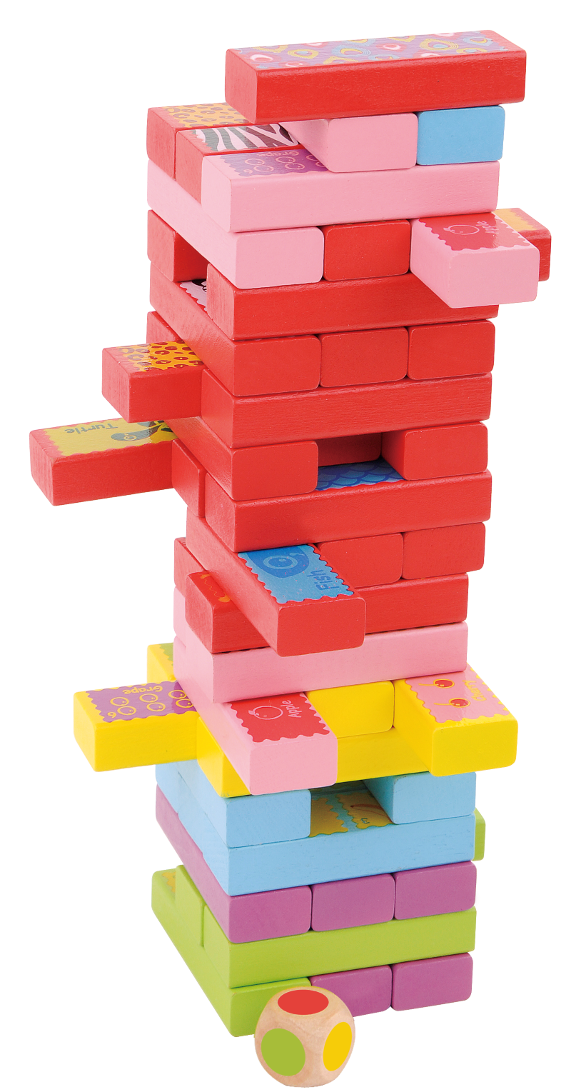 Divertido juego de habilidad que consiste en aumentar la altura de la torre de madera con sus propios bloques sin que se derrumbe en el proceso. Tendrás que utilizar el dado de colores para saber qué