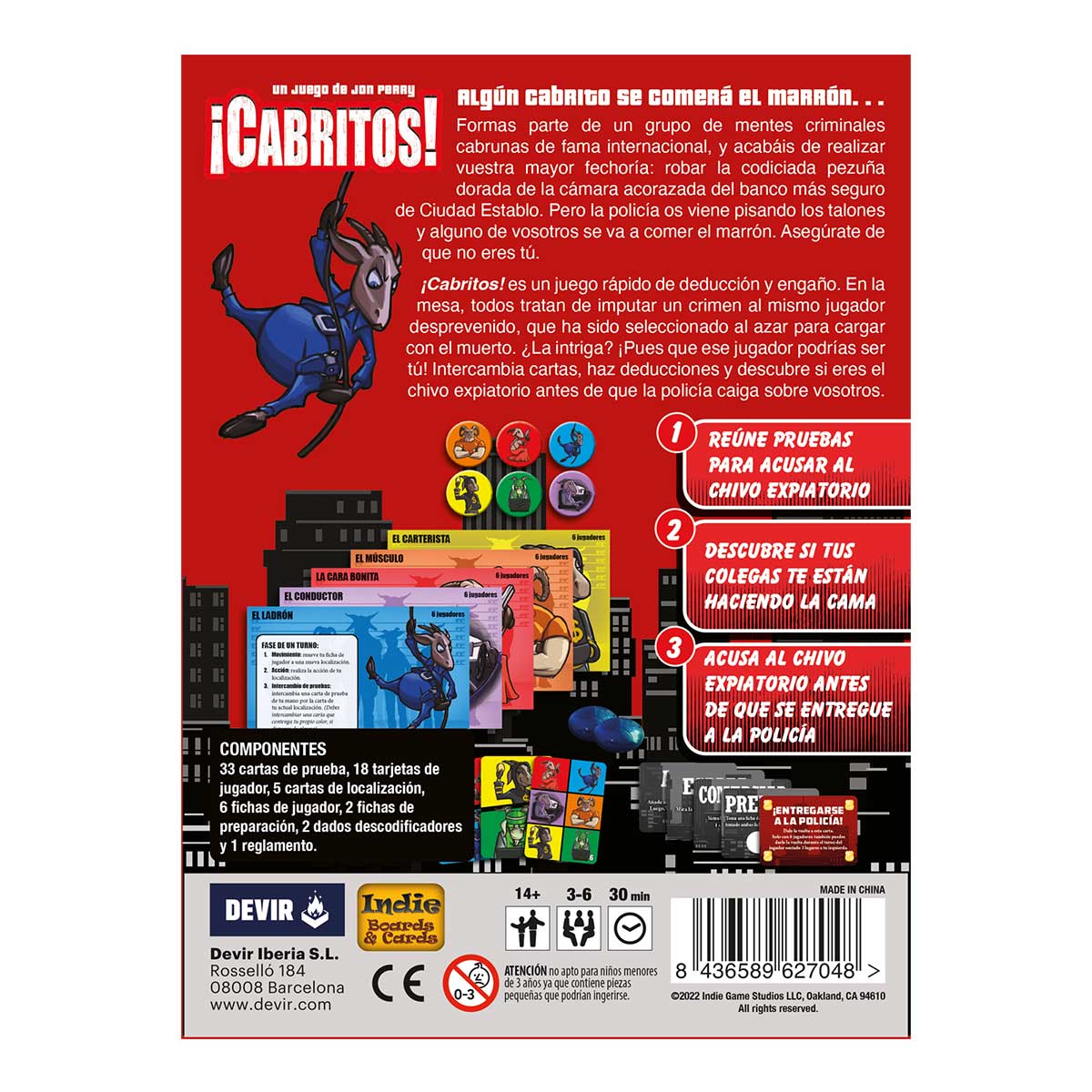 ¡Cabritos! Es un juego de deducción, roles ocultos y gestión de mano que os hará reír de lo lindo. Ideal para jugar tanto en familia como con grupos de amigos, seguro que no podréis jugar una sola partida.
