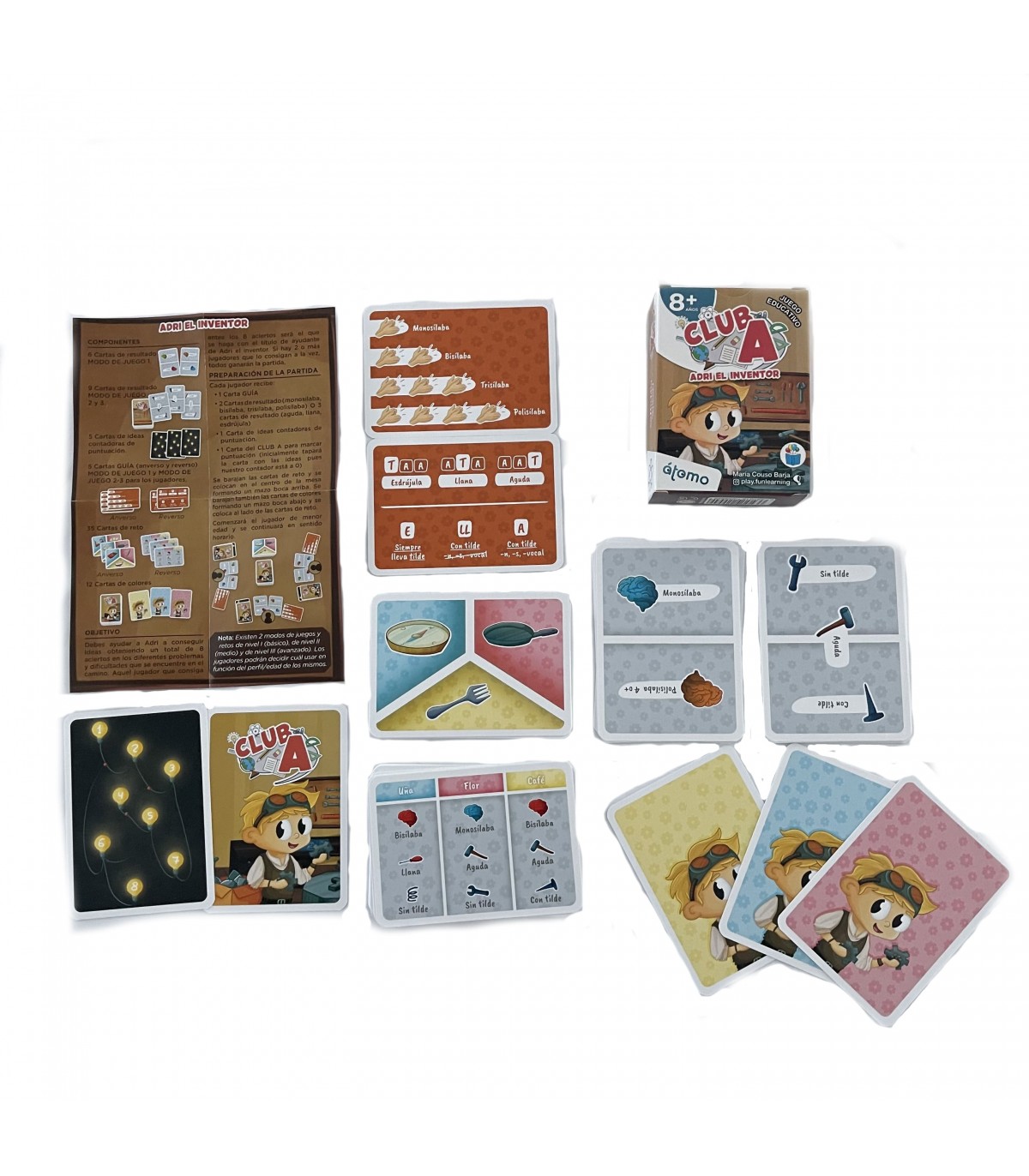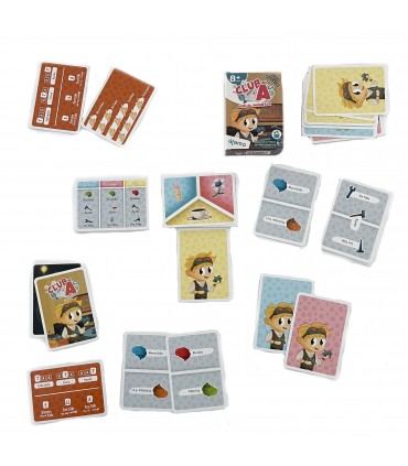 Los juegos de club A, consisten únicamente en una económica y transportable baraja de 50 cartas, con ilustraciones pensadas para que los niños disfruten. Su fácil mecánica, facilita que los niños puedan jugar en solitario o en grupos de cuatro.
