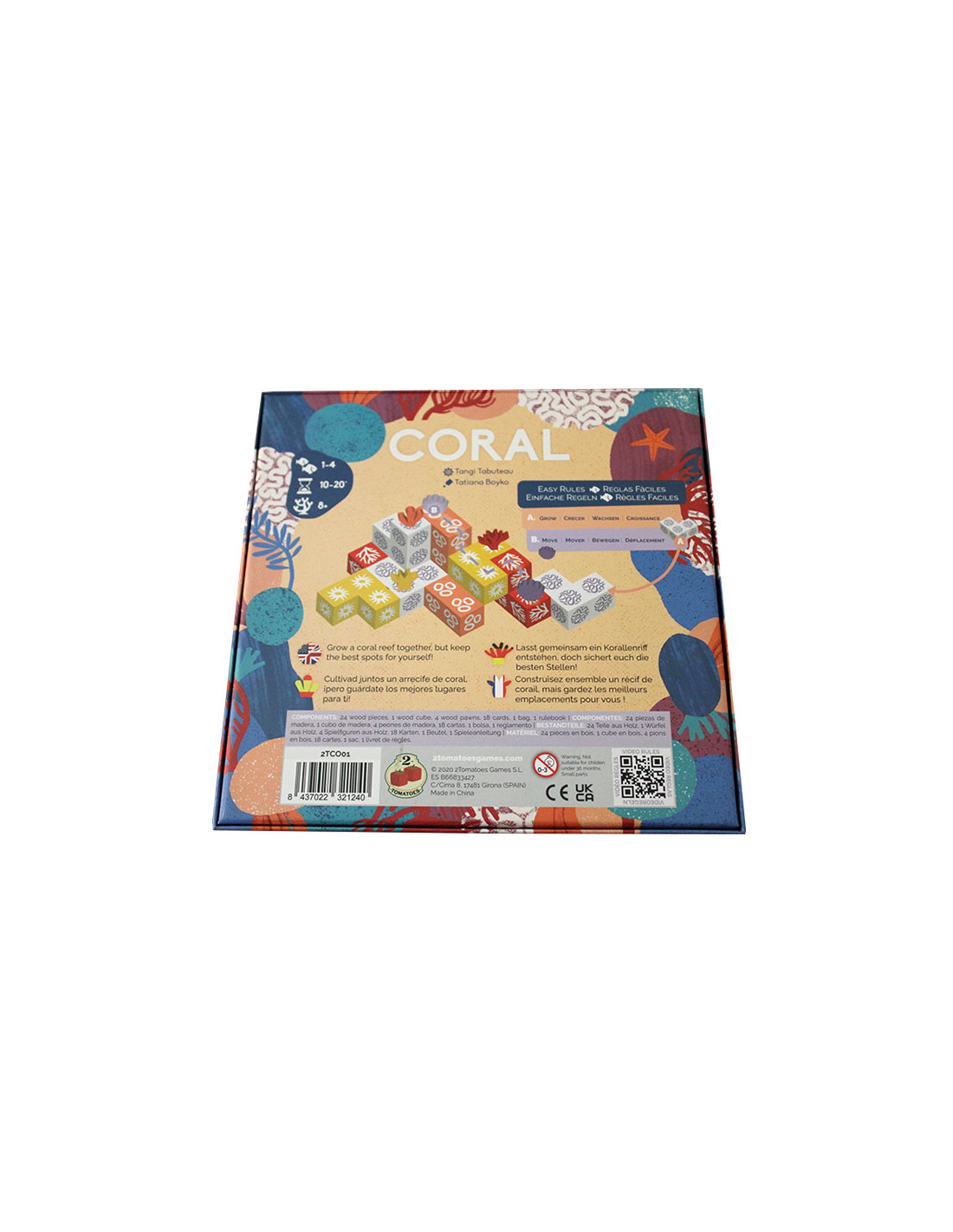 Cultivad juntos un arrecife de coral. ¡Pero guárdate los mejores lugares para ti ¡ En Coral, desarrollarás un arrecife de coral colectivamente, mientras competís por posicionar vuestras especies más cerca de la cima, donde pueden absorber la preciada luz solar.