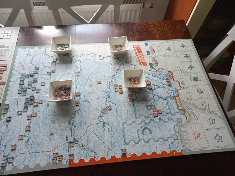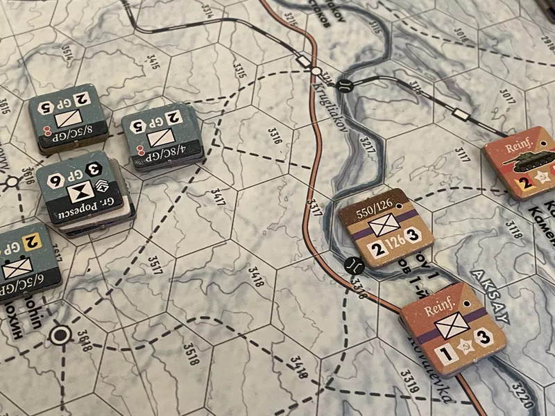 Un hexágono representa 4 km (2,5 millas) de terreno de lado a lado. Cada turno representa un período de 1-2 días. Las unidades de combate son en su mayoría brigadas y regimientos para los soviéticos y rumanos, batallones y abteilungen para los alemanes.