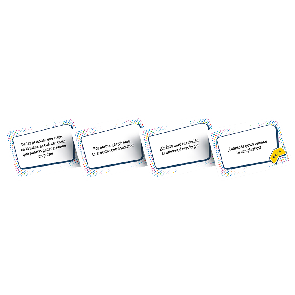 Fun Facts es un juego de mesa cooperativo que pone a prueba lo bien que conoces a los otros jugadores. En cada turno, responderéis en secreto con un número a una pregunta personal. A continuación, intentaréis colocar vuestras respuestas en orden ascendente prediciendo cómo han respondido los demás. Por último, revelaréis las respuestas y ganaréis puntos si habéis acertado. Después de 8 preguntas, apuntad vuestra puntuación final en el registro de leyendas. ¡Intentad superar vuestra máxima puntuación en la próxima partida!