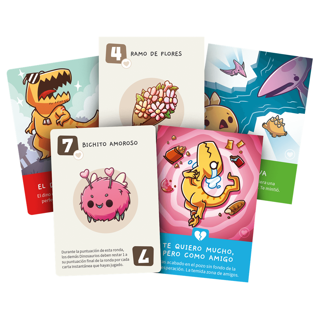 ¿Hay algo peor que el hecho de que te caiga un meteorito? La primera cita. En esta expansión de 54 cartas podrás esquivar la temida zona de amigos, quedar con un pez gato gigante o salir con un dino que dice «te quiero» demasiado pronto. Cosas bastante incómodas…