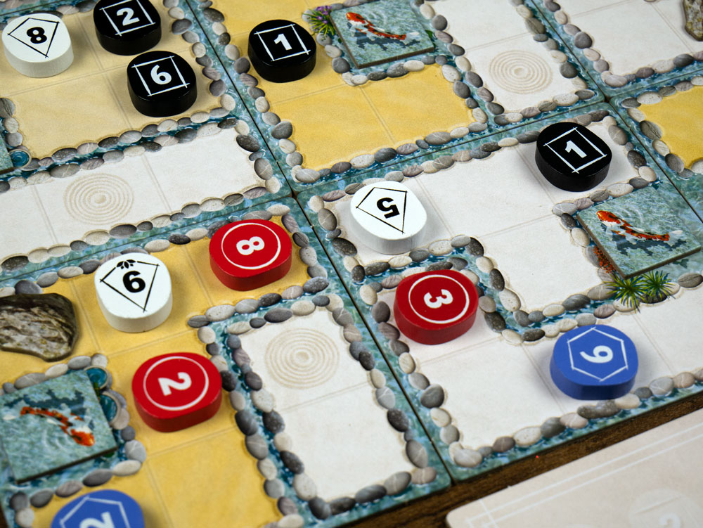 Derrota a tus oponentes pensando estratégicamente, pero no olvides los preciados Koi, que te otorgarán puntos extras al final de la partida.