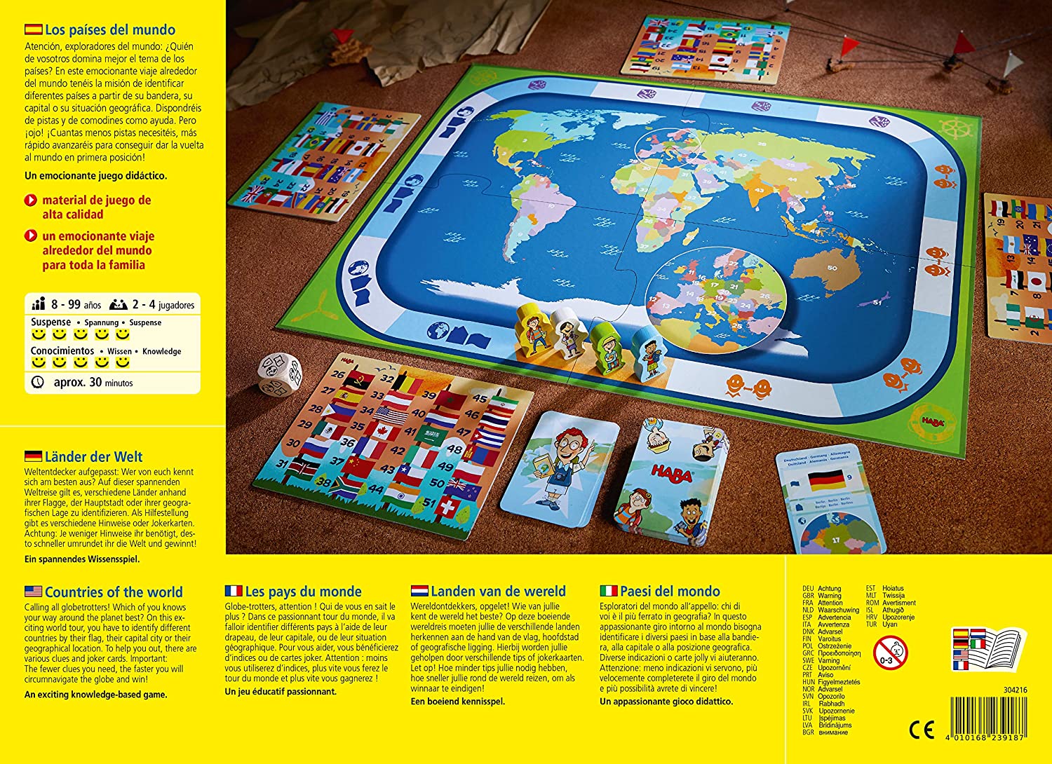 En este emocionante viaje alrededor del mundo hay que identificar diferentes países a partir de su bandera, su capital o su situación geográfica. Hay pistas y comodines como ayuda. Pero ¡ojo! ¡Cuantas menos pistas se necesiten, más rápido se dará la vuelta al mundo. Gana quien consiga hacerlo primero.