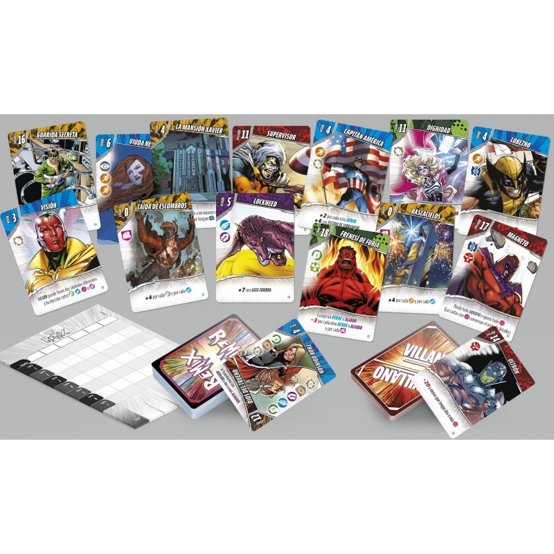 Con Marvel: Remix construye tu propio equipo de icónicos héroes y aliados, equípales con tecnología, viaja a emblemáticos lugares y derrota a los más infames villanos. Los jugadores reciben una mano de 7 cartas con personajes, objetos o lugares reconocibles del Universo Marvel. Cada turno, deberás robar del mazo de Héroes, del mazo de Villanos o de las cartas desacartadas por tus oponentes y luego descartarte de una carta de tu mano. ¡Gracias a las múltiples combinaciones de las cartas, prepárate para una épica batalla de superhéroes que será única en cada partida!
