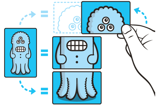 Vuestro objetivo en el juego es construir un monstruo que sea EXACTAMENTE IGUAL al que aparece en vuestra carta de Objetivo Secreto: con los mismos ojos, la misma boca y las mismas piernas.