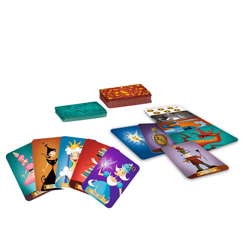 En Reinas Durmientes debes conseguir despertar a 5 reinas antes que nadie. En este divertido juego de mesa hay 7 tipos de cartas especiales de acción y 12 cartas de reinas. Cada carta especial tiene una función diferente y con ellas debes conseguir retrasar a tus oponentes del objetivo y ser el primero en lograrlo, ¿lo conseguirás?.