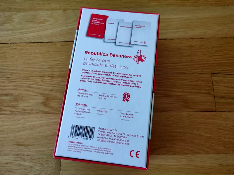 Con República Bananera tus amigos no querrán irse de casa. Haz las combinaciones más delirantes y rompe todos tus tabús en una noche que fingirás no recordar. Usa tu astucia para ganar más puntos que tus contrincantes y convertirte en el gobernador de la República Bananera. República Bananera es un juego de mesa muy fácil de aprender, un minuto después de abrir la caja ya podréis estar jugando, pero con tantas combinaciones que podrás jugar años y tendrás la sensación de estar jugando a un juego nuevo. Contiene modos de juego extras para más diversión