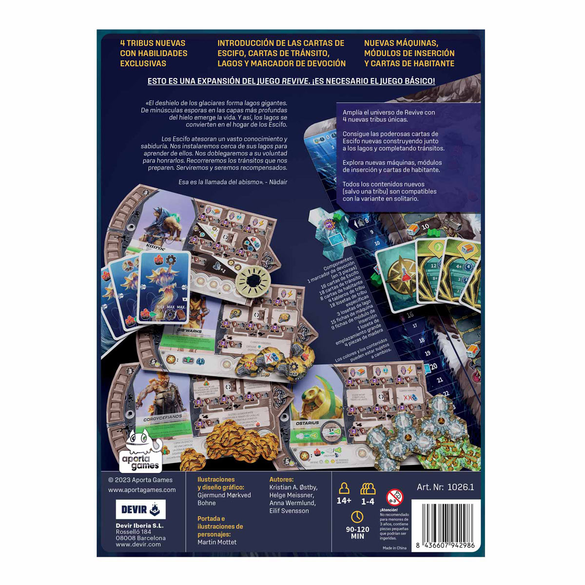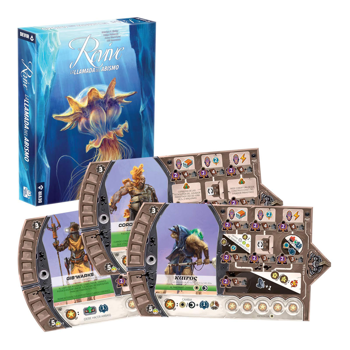 ¡Amplía el universo de Revive con nuevos componentes y mecánicas! Además de nuevas tribus, máquinas, cartas de habitante y módulos de inserción, la expansión ‘La llamada del Abismo’ incorpora el nuevo marcador de devoción, que se añade al tablero central de juego, así como las poderosas cartas de Escifo, que te otorgarán habilidades muy útiles.
