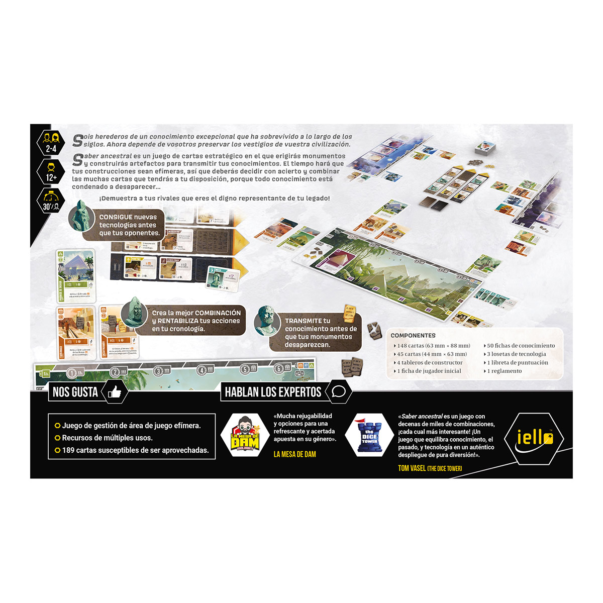 Saber ancestral es un juego estratégico de motor de cartas con temática de civilizaciones diseñado por Rémi Mathieu, en el que pueden participar de 2 a 4 jugadores, a partir de 14 años, en partidas de unos 75 minutos de duración. Los jugadores deberán articular un motor de juego que irá evolucionando con el paso del tiempo. Cada turno, todos vuestros monumentos se acercarán a algo inevitable: pertenecer al pasado…