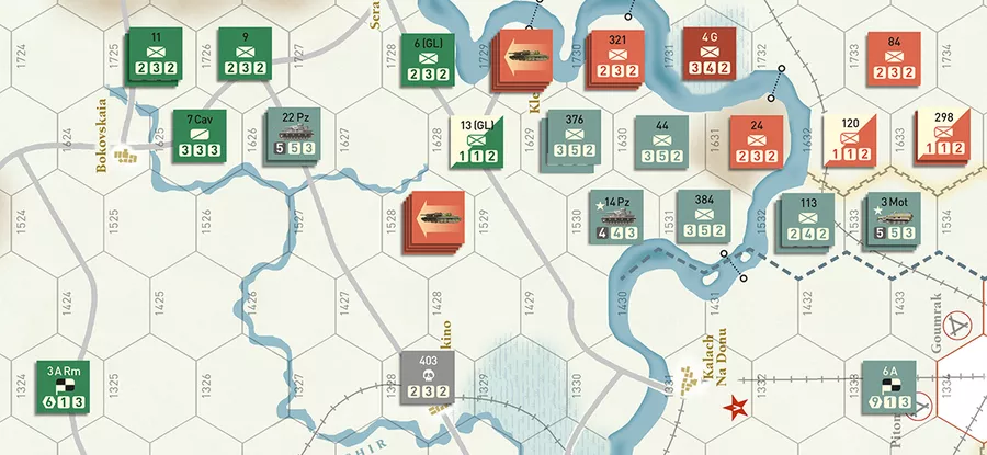 Estrella y Galope: Comenzando en febrero de 1943, este escenario muestra el final de la campaña desde la rendición del 6º Ejército. Un verdadero juego dentro del juego, permite a los jugadores descubrir estas ofensivas muy poco simuladas y abre una situación rica en oportunidades para el jugador soviético.