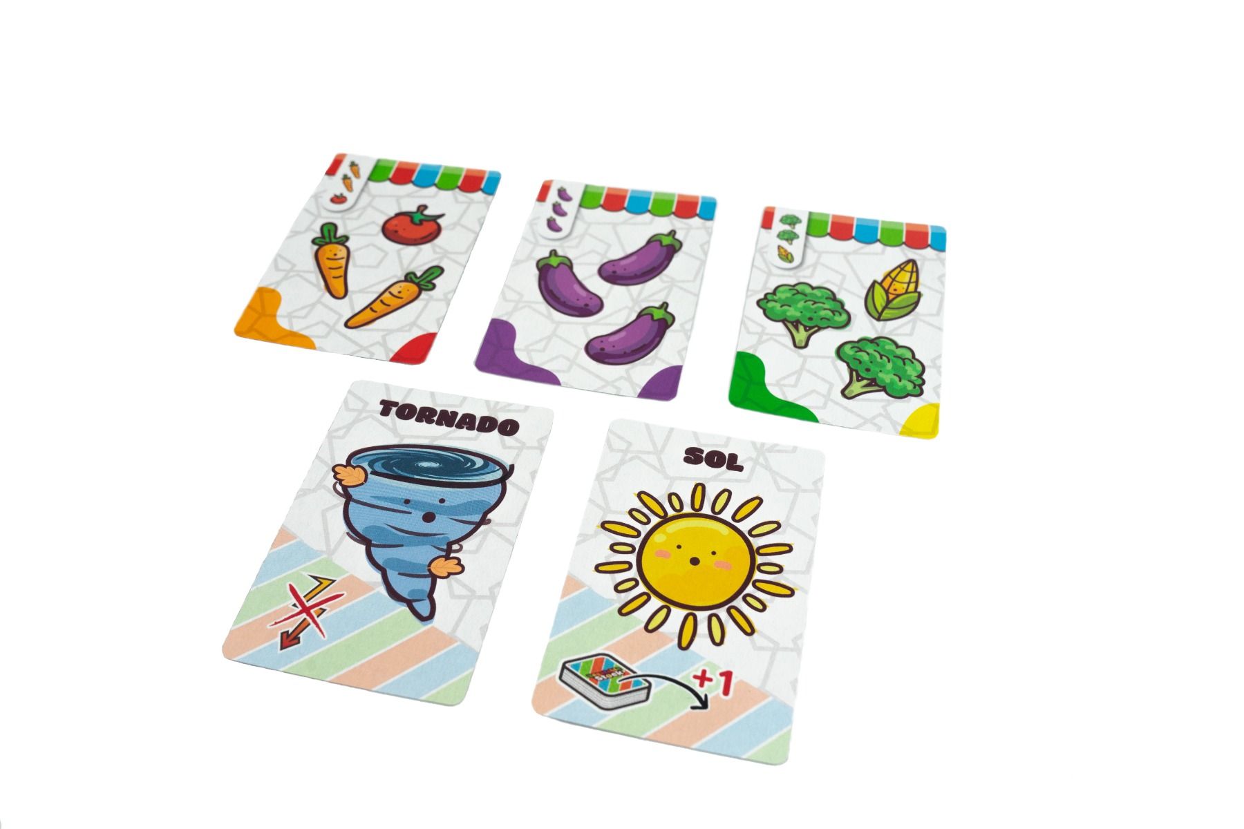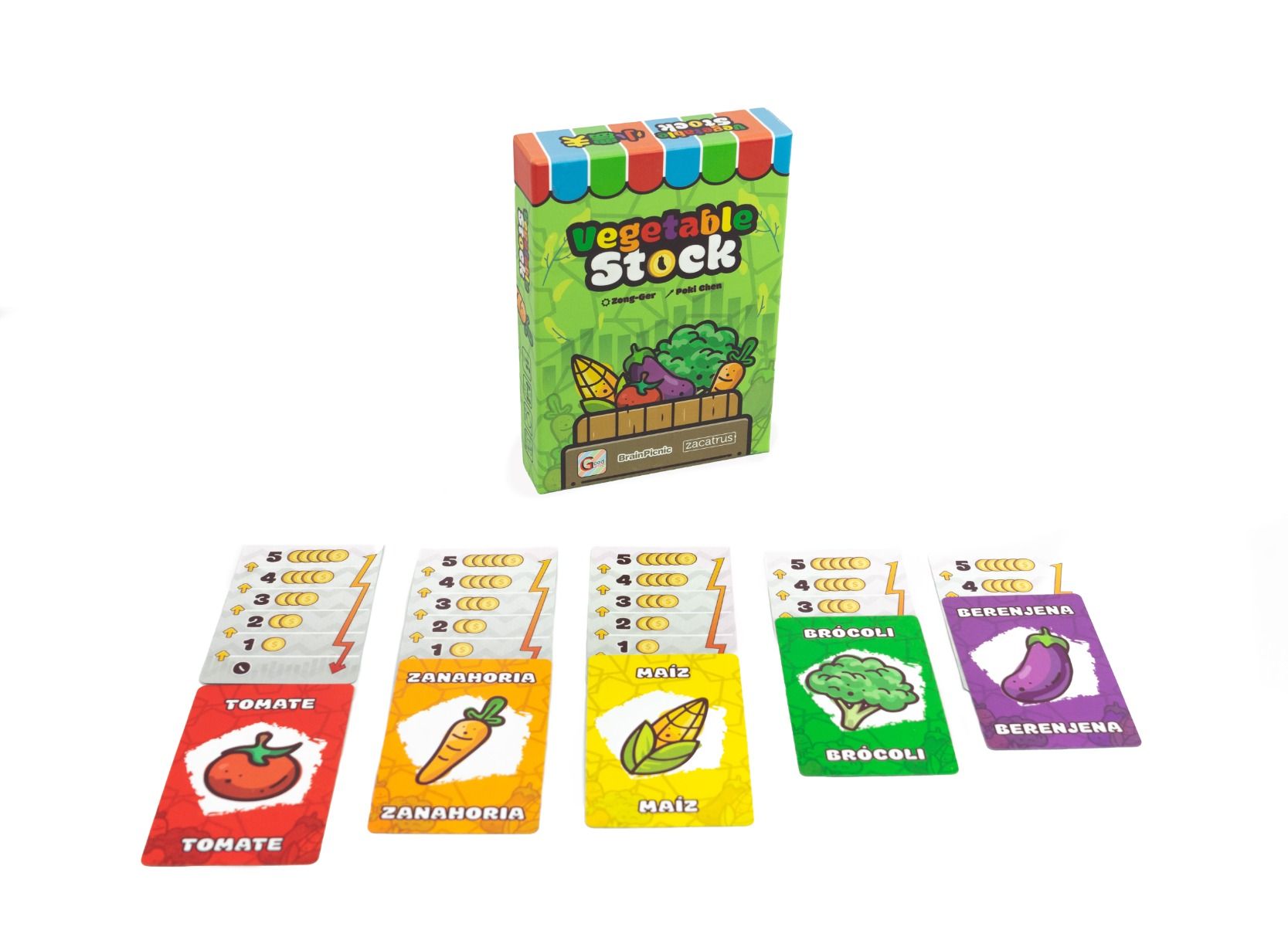 En una partida de Vegetable Stock deberás jugar bien tus cartas con el objetivo de conseguir que tus verduras puntúen lo máximo al final de la partida. Consigue puntos haciendo que tu verdura se quede en la mesa para aumentar el valor de la verdura en el mercado, pero cuidado, que a veces eso hará que el valor caiga deslomado.