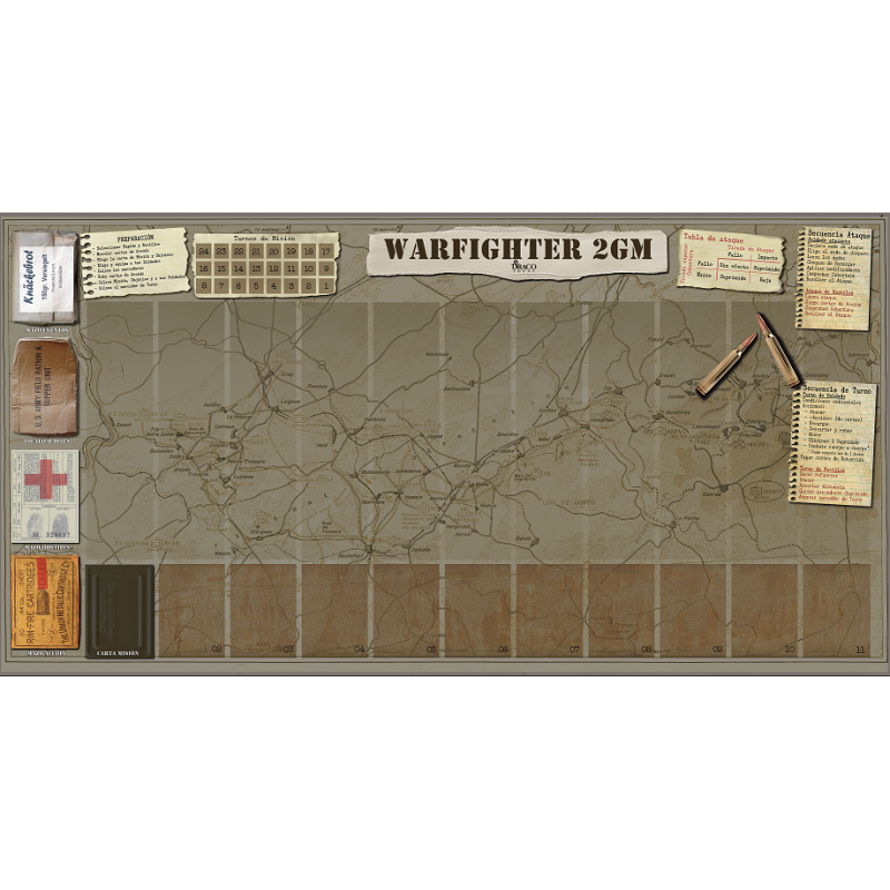 - +250 cartas de diferentes tipos (cartas de misiones, objetivos, soldados, habilidades, equipamiento, armas …).