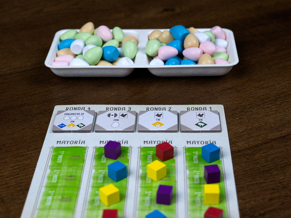 La Expansión Europea también incluye una bandeja adicional para almacenar la creciente colección de aves (pasadas, presentes y futuras), así como 15 huevos morados, fichas de alimento adicionales y un nuevo y colorido bloc de puntuación tanto para partidas de varios jugadores como en solitario.