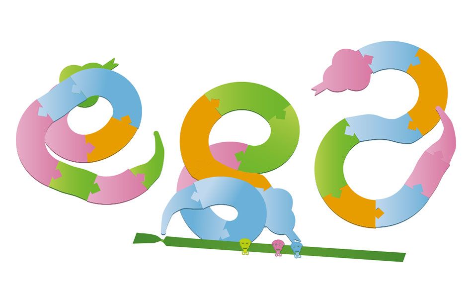 Estas divertidas serpientes juegan a enroscarse y ver cuál puede acercar más su cola a su cabeza. iHaz que la tuya sea la ganadora! lanza el dado y añade nuevas partes a tu serpiente.