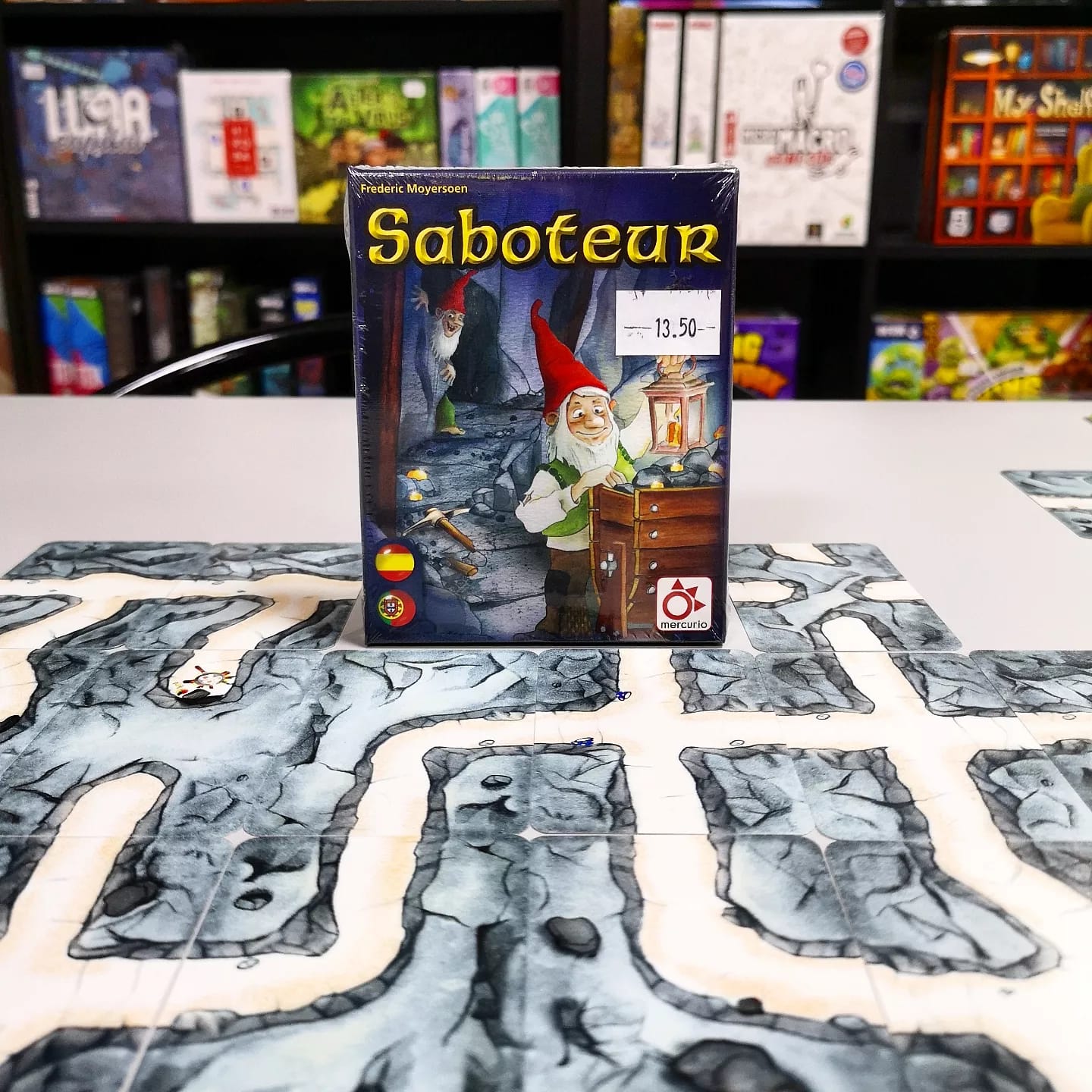 Si te preguntas por qué ha tenido y sigue teniendo tanto éxito, juégalo y lo entenderás. Te puedes hartar de reír con una mecánica tan sencilla y divertida. Estrategia, deducción, memoria… ¡Ponlo todo a trabajar! Sois todos enanos dentro de una mina con un objetivo común: cavar un túnel ininterrumpido para encontrar el tesoro. Pero… ¿Cómo se te da fingir y ocultar tus oscuras intenciones? Porque tendrás que hacerlo si te toca ser el saboteador. Tus compañeros intentarán construir un túnel maravilloso para llegar a la pepita de oro que se encuentra al final del camino (en uno de los tres finales, claro), pero ahí estarás tú para intentar evitarlo sin que sea muy evidente tu traición. Con tus cartas podrás ir entorpeciendo la construcción rompiendo los farolillos, los picos, las carretillas… E incluso derrumbando las rocas para evitar el progreso.